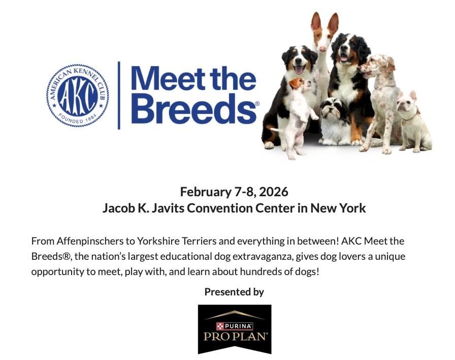 From Affenpinschers to the Yorkshire Terrier and everything in between, AKC Meet the Breeds® gives pet lovers the unique opportunity to meet and play with more than 150 different dog and cat breeds in booths individually decorated to depict each breed’s country of origin, historical purpose/function, and attributes as a family pet, all while learning about responsible pet ownership and which breeds may be right for them.